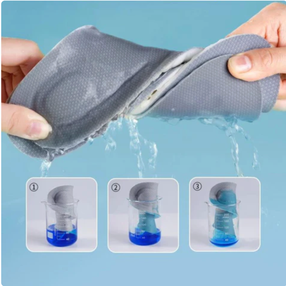 Materialet hjälper till att absorbera fukt och minska uppbyggnaden av bakterier i skorna.